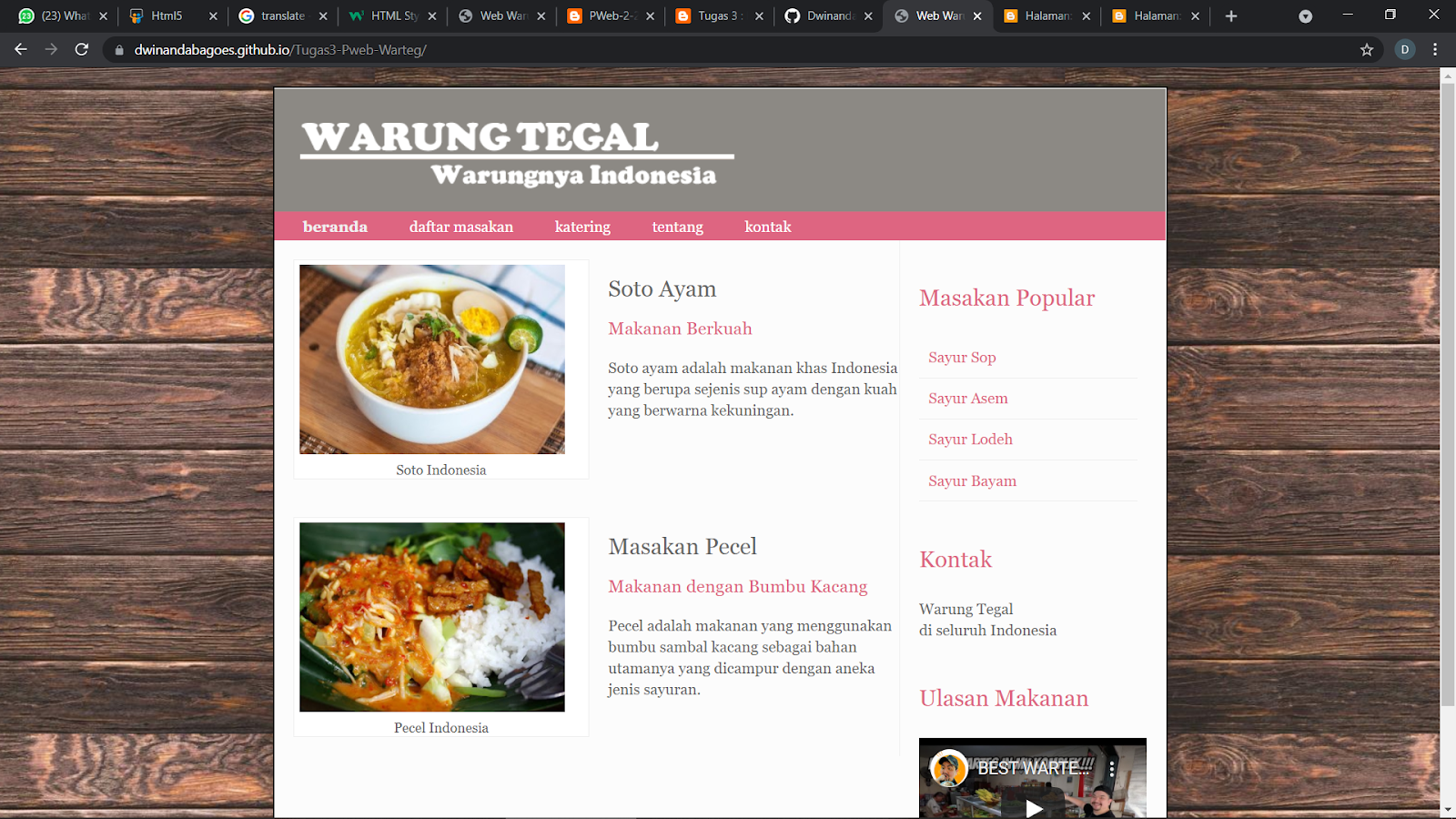 Berikut adalah source code HTML dari website Warung Tegal yang saya buat.